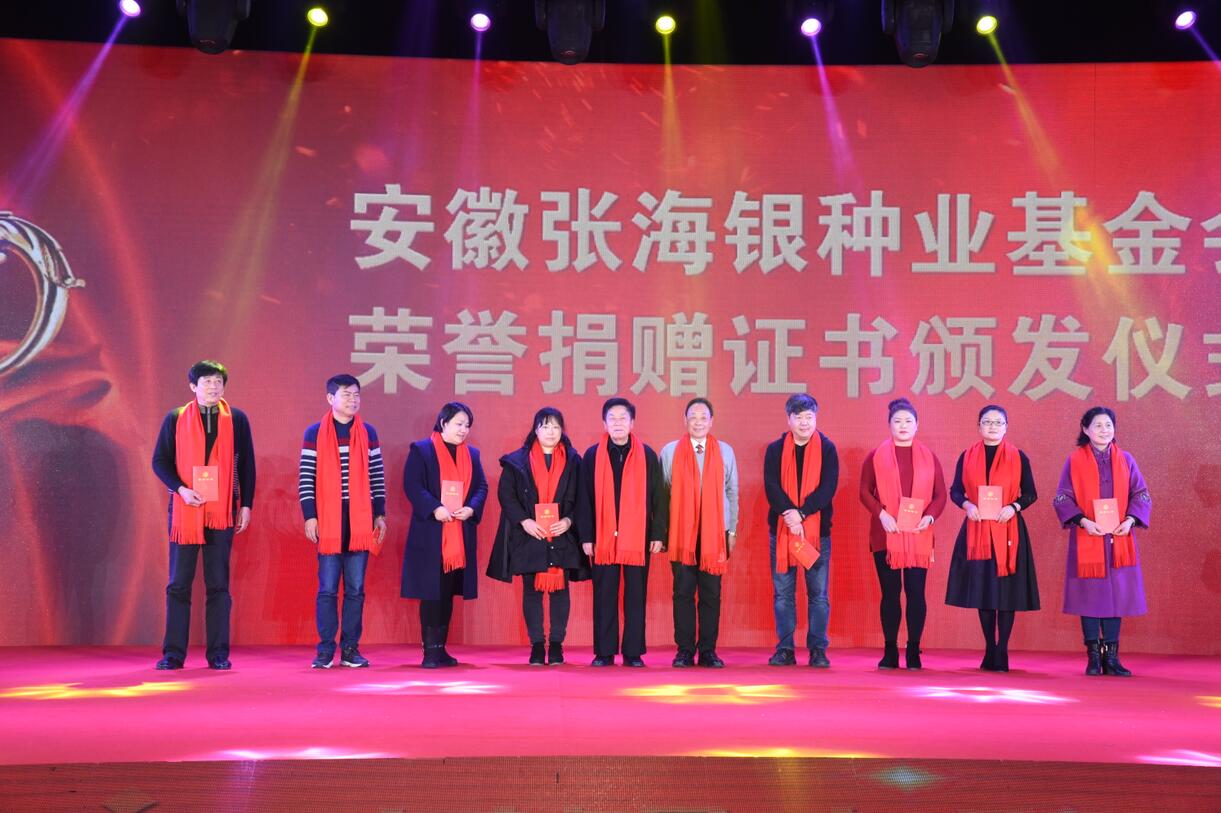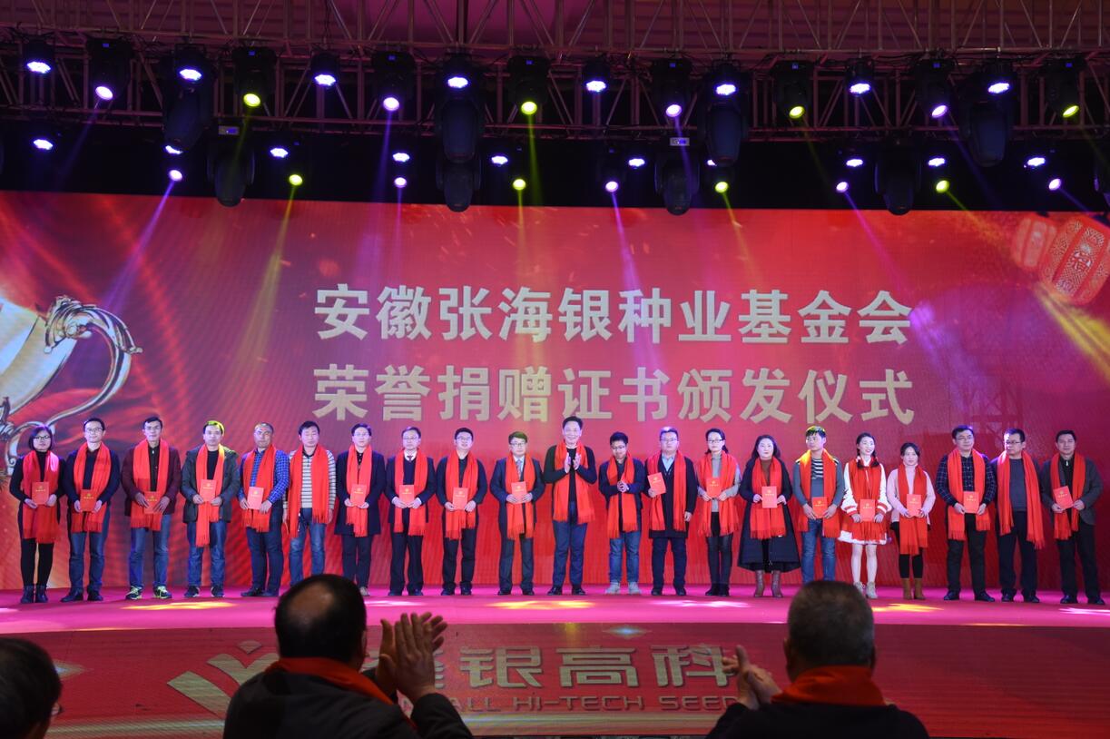 會上,對荃銀高科總部及子公司2017年度先進集體、先進個人進行了表彰獎勵進行了安徽張海銀種業基金會頒發捐贈證書儀式。