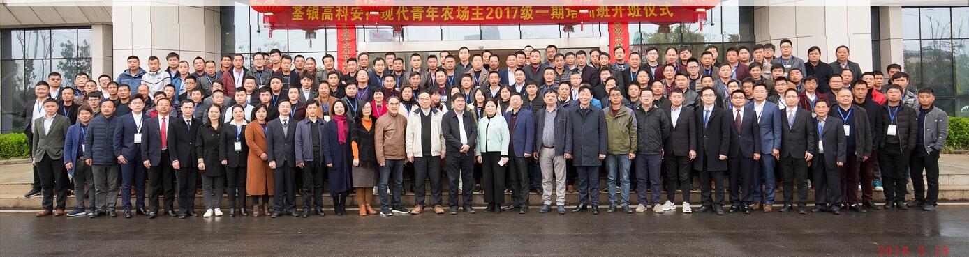 ? ? 2018年3月18日,農歷二月初二,荃銀高科安徽現代青年農場主2017級培訓班(糧油專業)開班典禮在公司六樓多功能廳舉行。安徽省農委科教處程世根副處長,合肥市農委夏倫平主任,安徽省農委科教處程曉冬主任、周偉主任,中化農業MAP安徽區域經理彭江南,金豐公社經理薛貽斌,安徽荃銀高科董事長兼總經理張琴,培訓班總教務長楊惠成,安徽張海銀種業基金會秘書長張彤等領導及相關人員參加開班典禮。來自全省各地150多名青年農場主參加了本次集中培訓。