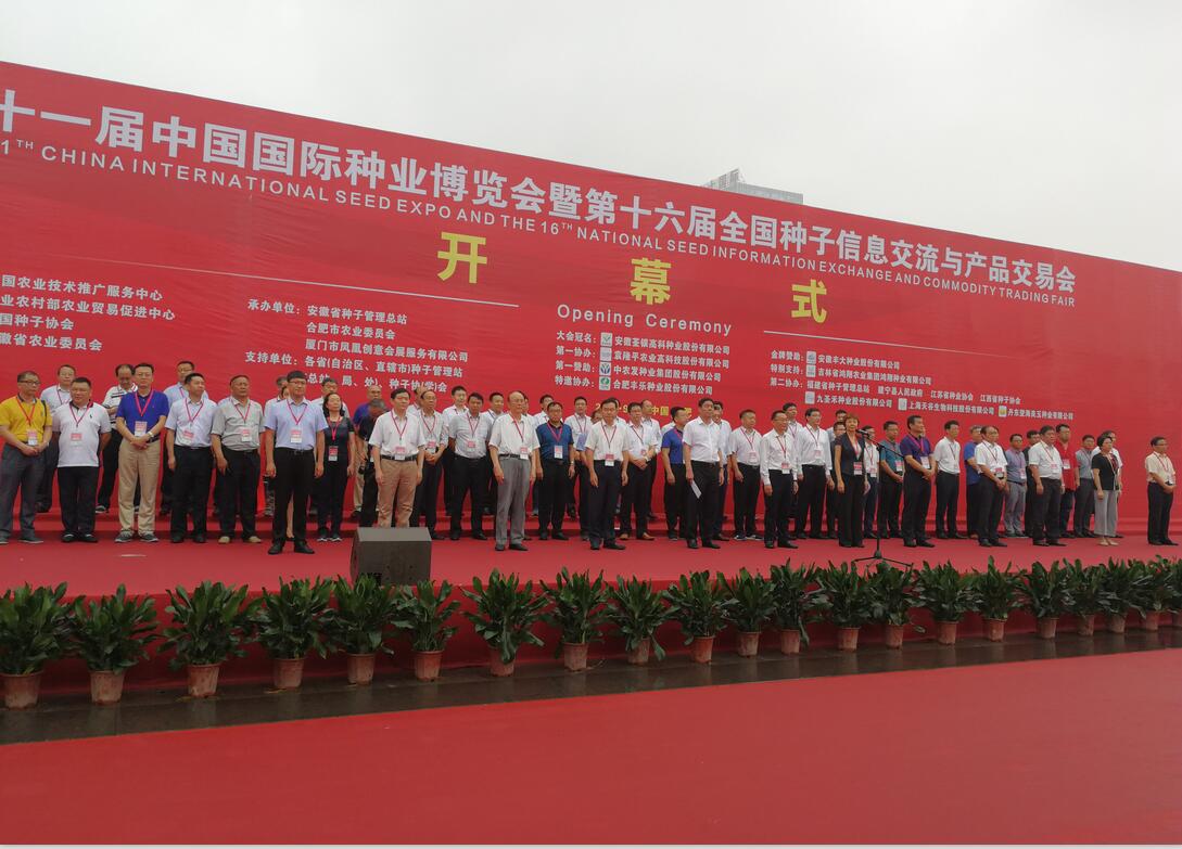 ??? 9月16日上午,第十一屆中國國際種業博覽會與第十六屆全國種子信息交流暨產品交易會(簡稱“種子雙交會”)在安徽國際會展中心開幕。農業農村部種業管理司吳曉玲副司長出席開幕式并宣布大會開幕,全國農技中心主任劉天金、安徽省農委黨組書記、主任盧仕仁出席并致辭。全國農技中心黨委副書記、紀委書記劉信、中國種子協會副會長兼秘書長蔣協新、中國種子協會副會長鄧光聯、中國種子協會顧問委員會主任李立秋等領導以及安徽荃銀高科種業股份有限公司董事長張琴等企業代表出席了開幕式。開幕式由農業農村部貿易促進中心副主任宋聚國主持。