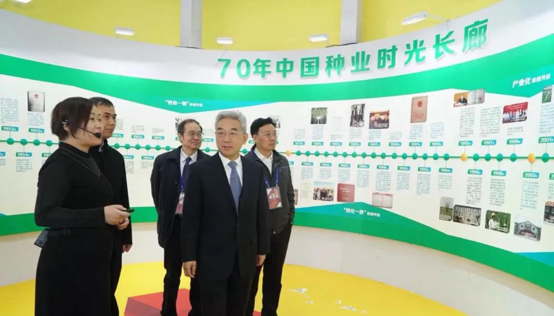 ??? 開幕式后,張桃林副部長參觀了“種子力量——新中國成立70周年與改革開放40年中國種業成就展”以及企業展廳。農業農村部科技教育司司長廖西元、種業管理司副司長周云龍、種業管理司副司長吳曉玲、中國種子協會副會長鄧光聯等領導陪同巡展。