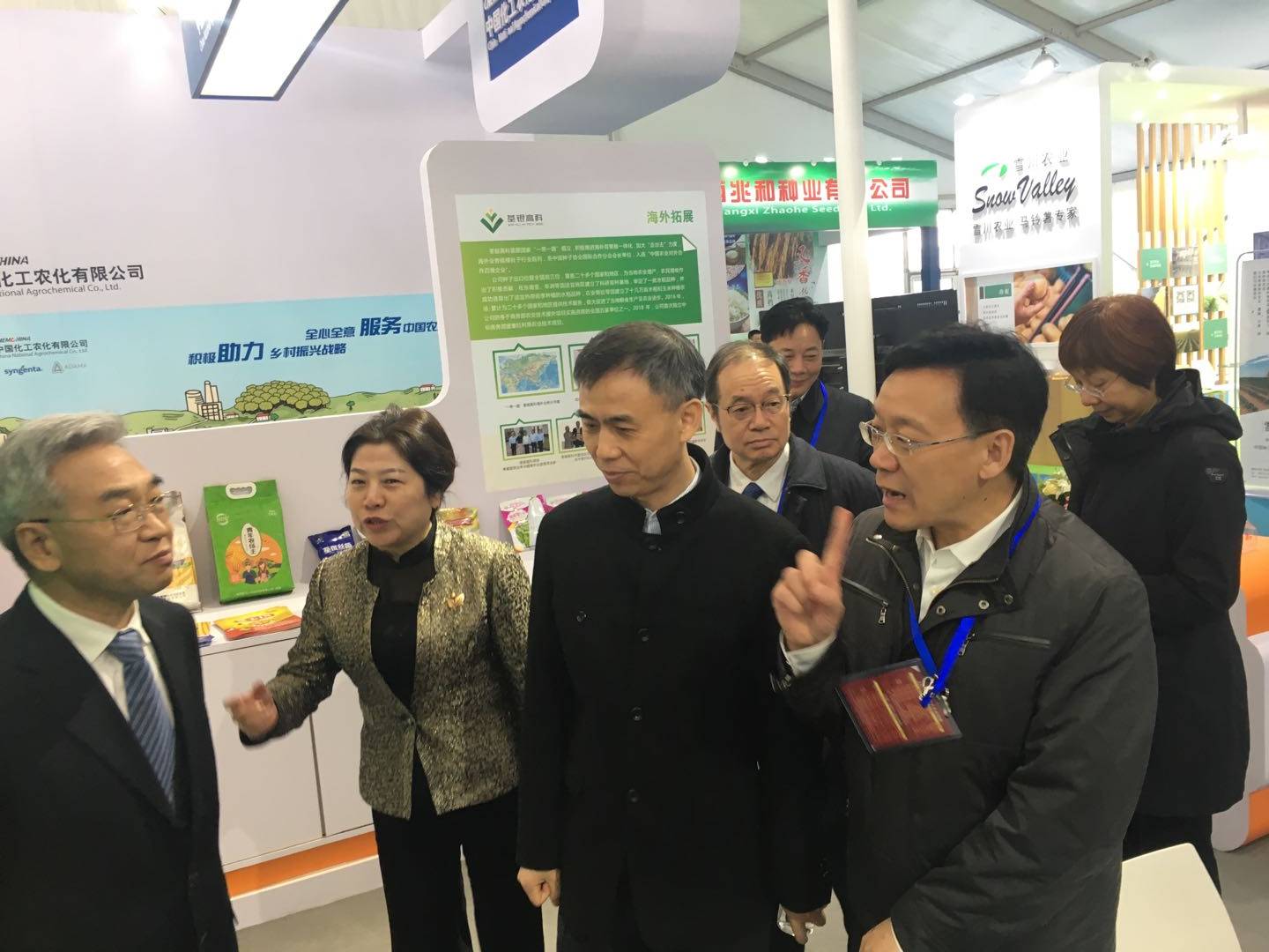 ??? 荃銀高科展廳重點從科技創新、科企合作、農業社會化服務、人才培養、產業體系及海外開拓、履行社會責任等方面展示企業風采,張桃林副部長給予肯定。