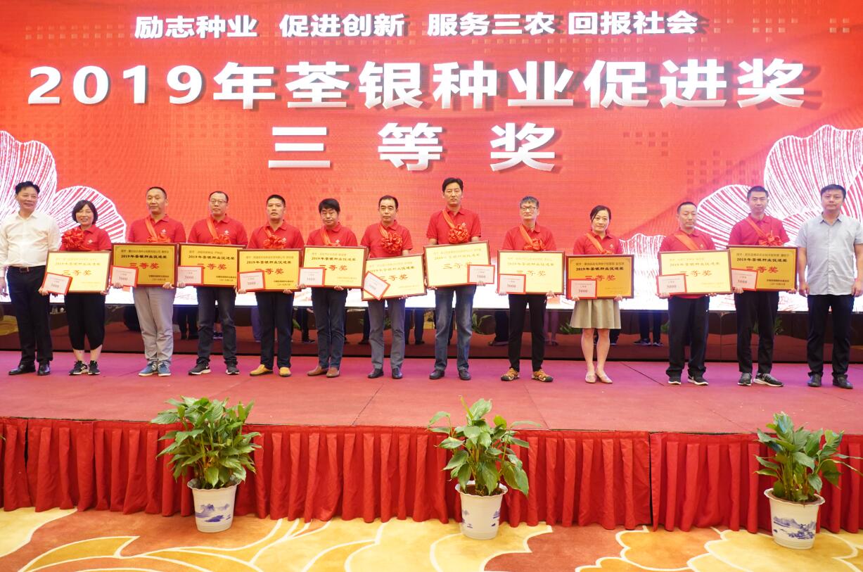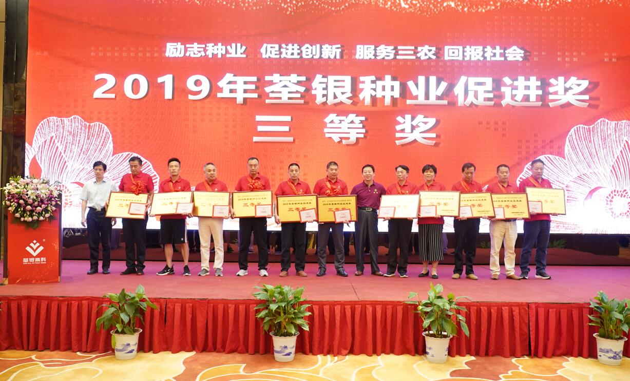 ??? 守初心擔使命,荃銀人深知企業(yè)的發(fā)展離不開社會的支持。會上,安徽張海銀種業(yè)基金會監(jiān)事鄭滿生先生宣讀“荃銀種業(yè)促進獎”頒獎文件,大會向35名在優(yōu)質(zhì)水稻推廣和良種服務(wù)等方面取得優(yōu)異成績的代表頒發(fā)了“荃銀種業(yè)促進獎”專項獎。