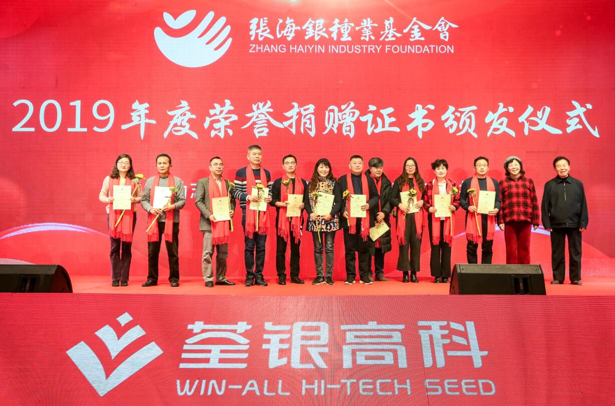 ? ? 公益無界,大愛無疆。會議還進行了安徽張海銀種業(yè)基金會頒發(fā)捐贈證書儀式,鼓勵更多人踐行公益,傳遞社會大愛力量。會議現(xiàn)場,荃銀高科員工及有關(guān)愛心人士向安徽張海銀種業(yè)基金會捐贈共計40.78萬元,用于激勵為中國種業(yè)發(fā)展作出突出貢獻的集體和個人,以及助學(xué)公益項目和慈善事業(yè),助力公益,薪火相傳。